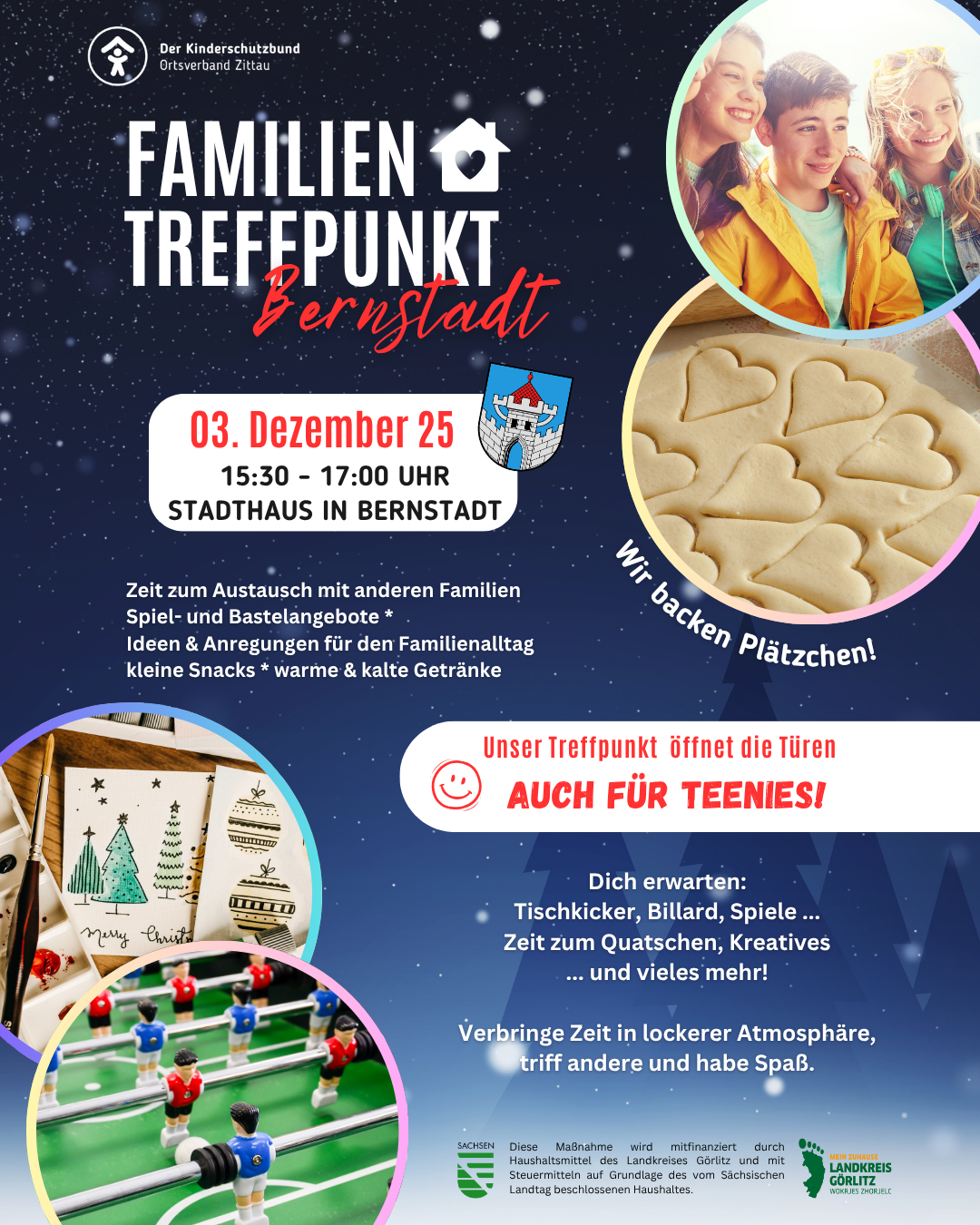 15:30 – 17:00 Uhr Familientreffpunkt in Bernstadt (monatlich)